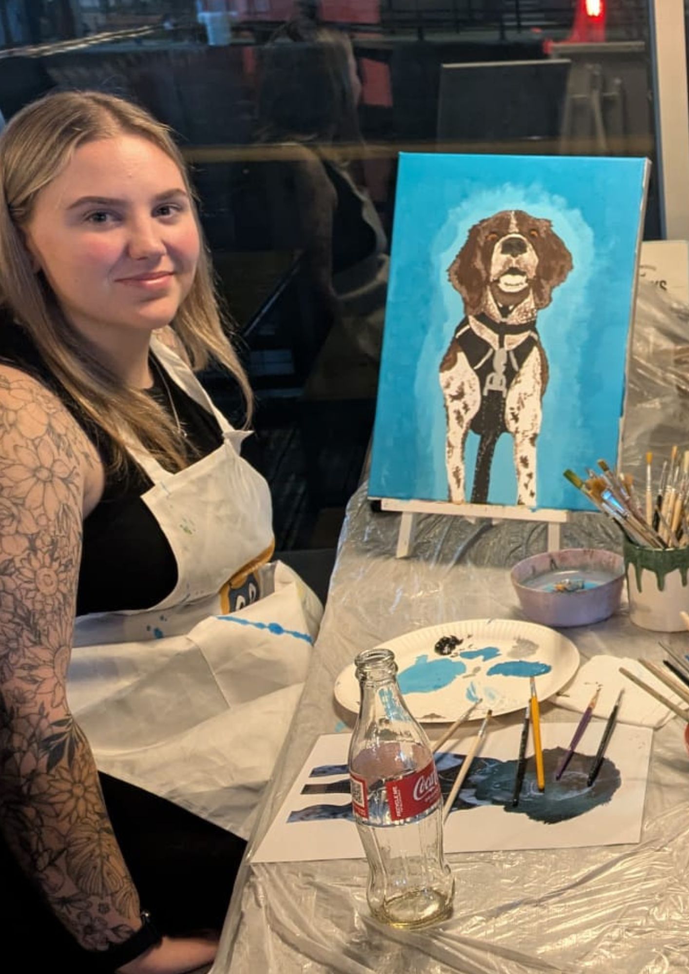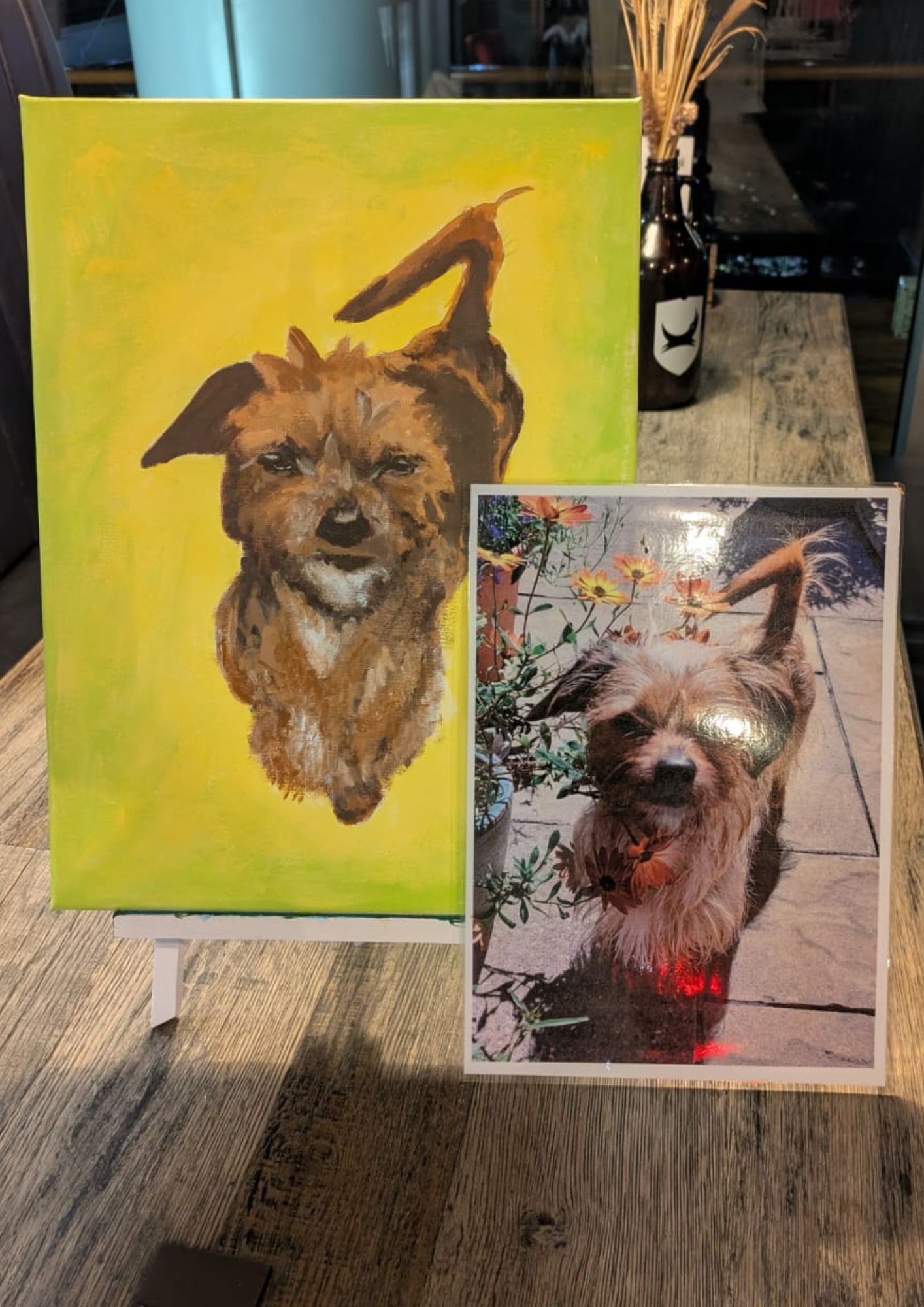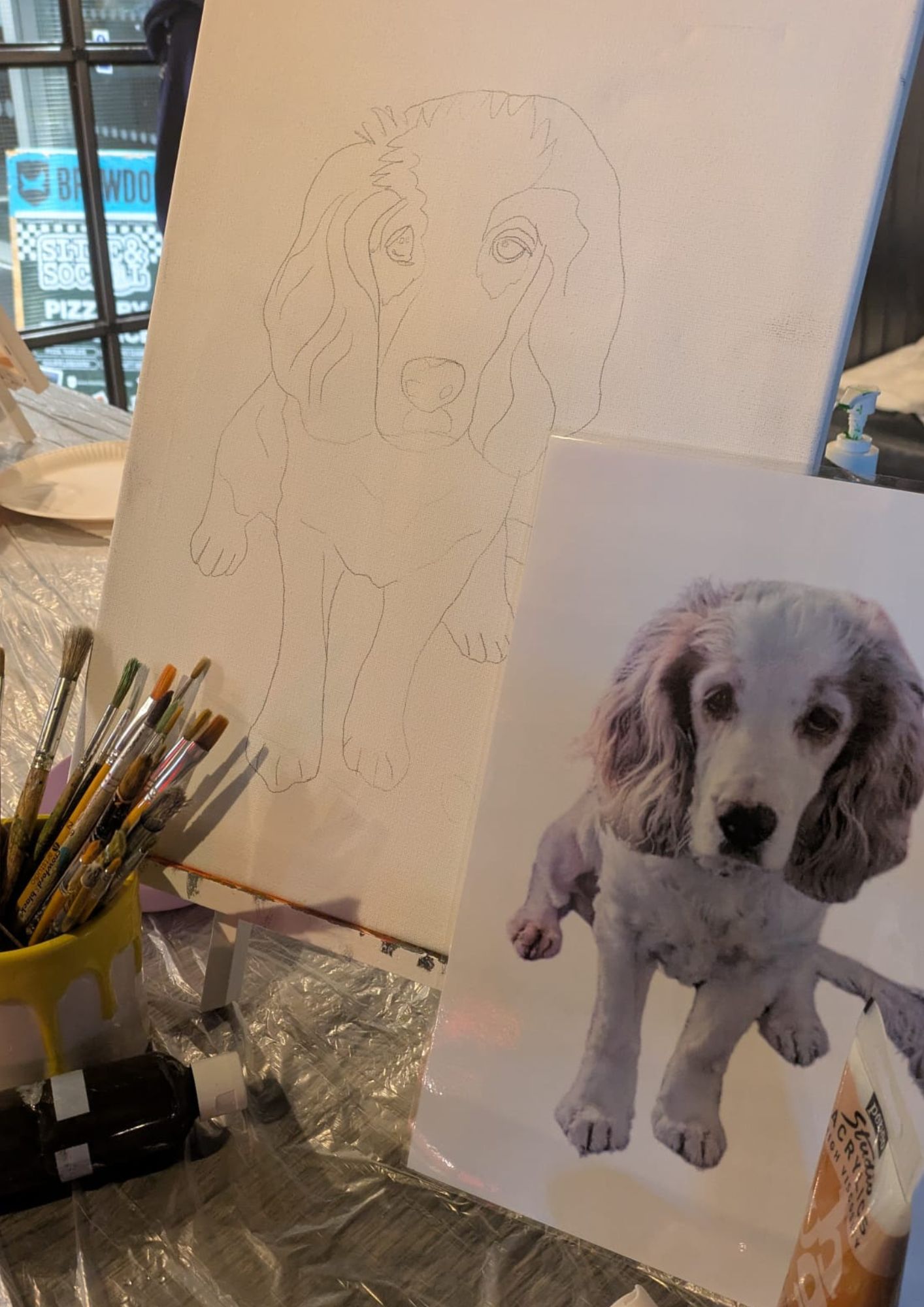 You send me your favourite photo before the session, I sketch the design onto your canvas, and you’ll bring it to life with colour, character and a whole lot of love.